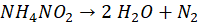 W tej mieszaninie gazy uwalniają się z NH4NO2. Zaprzestanie reakcji, gdy przestały wydzielać się gazy, oznacza, że cały NH4NO2 w próbce przereagował. Powstaje para wodna i azot cząsteczkowy, a więc różnica mas przed i po reakcji to masa azotanu obecnego w próbce.