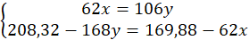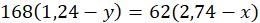 (2,74 – x) g – (1,24 – y) g
