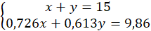 x – masa CuCl2, y – masa CuSO4