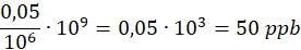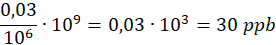 Najlepszym rozwiązaniem, które da łatwą do zapamiętania liczbę, będzie policzenie ppb, czyli pomnożenie stężenia razy 109