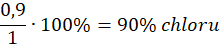 Stosunek molowy odpowiada stosunkowi objętościowemu dla gazów odmierzonych w tych samych warunkach, a więc w 1 dm3 mieszaniny jest 0,9 dm3 chloru i 0,1 dm3 fluoru.
