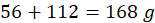 72 g – 56 g Fe