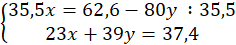 Tworzymy układ równań. Pierwsze równanie odnosi się do ilości chloru i bromu, drugie do ilości sodu i potasu: