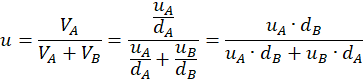Oblicz ułamek objętościowy składnika A w opisanej mieszaninie.