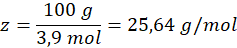 100 g mieszaniny zawiera łącznie 3,9 mola składników. Średnia masa 1 mola: