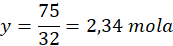 Ilość moli w 75 g tlenu: