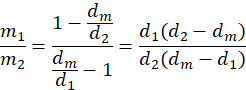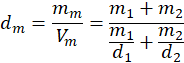 Objętości V1 i V2 w pierwszej części wzoru należy wyprowadzić ze wzoru na gęstość (d = m/V). Ten stosunek można obliczyć metodą krzyżową.
