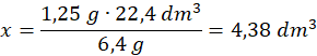 6,4 g O2 – 22,4 dm3 powietrza