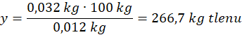 Z 1 molem węgla – 12 g – reaguje 1 mol tlenu – 32 g. Ilość tlenu, jaka przereaguje ze 100 kg węgla: