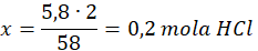 58 g – 2 mole HCl