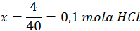 40 g – 1 mol HCl