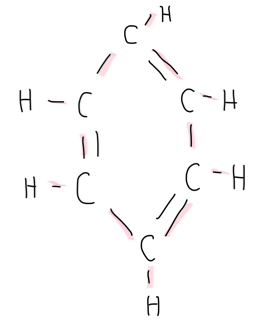 Podaj liczbę elektronów zdelokalizowanych, liczbę wiązań typu s oraz liczbę wiązań typu p w cząsteczce benzenu.