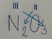 Aby ustalić wzór tlenku, należy pamiętać, że azot, jak sama nazwa kwasu wskazuje- jest w tym przypadku trójwartościowy: