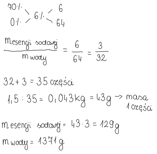 1. Z krzyża Andrzeja obliczamy, ile części masowych esencji sodowej i ile wody należy użyć, aby otrzymać ocet.