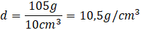 Odpowiedź: C. Gęstość srebra wynosi 10,5 g/cm3.