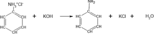 W tej reakcji anilina jest wypierana z roztworu swojej soli poprzez działanie mocniejszą zasadą.
