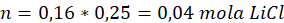 Aby wyznaczyć liczbę moli badanej substancji (LiCl), należy skorzystać z proporcji: