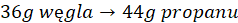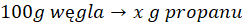 3. Obliczamy masę propanu, w której znajduje się 100 g węgla. W tym celu sporządzamy proporcję: