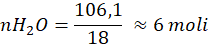 4. Wiedząc, że masa 1 mola wody jest równa 18g, obliczamy liczbę moli wody hydratacyjnej: