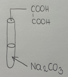 COOH-COOH + Na2CO3à H2O + CO2 + COONa-COONa à doszło do wyparcia kwasu węglowego z roztworu jego soli, ale jest to na tyle nietrwała cząsteczka, że od razu rozpada się do wody oraz wydzielającego się dwutlenku węgla
