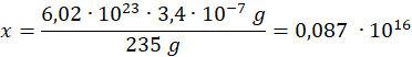 Z 1 mola AgI powstaje 1 mol Ag+, więc w 100 cm3 jest 0,087 · 1016 jonów.