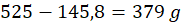 145,8 g – x