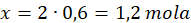 x moli – 0,6 dm3