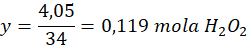 1 mol H2O2 – 34 g