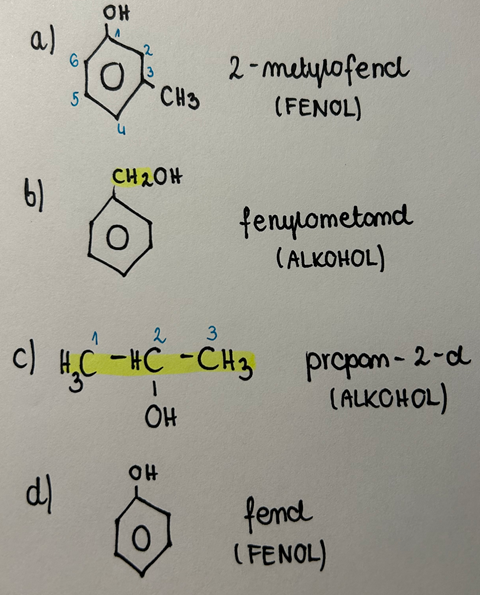 Wskaż, które ze związków chemicznych o podanych wzorach półstrukturalnych są alkoholami, a które fenolami, a następnie zapisz nazwy systematyczne przedstawionych fenoli.
