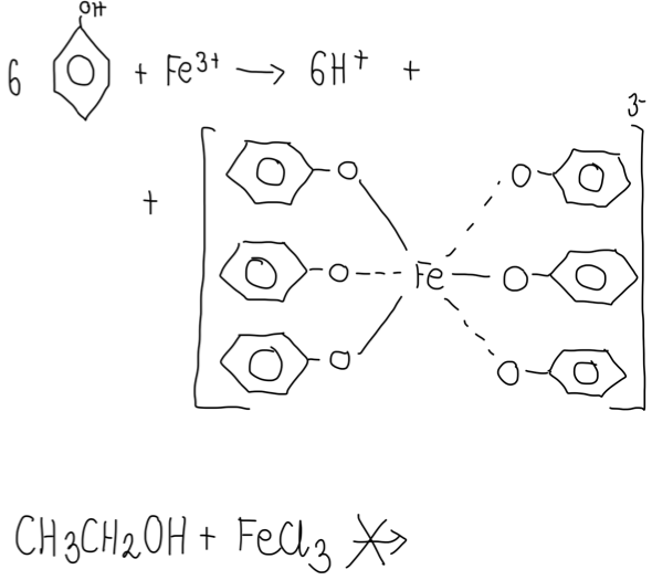 2. Reakcja z FeCl3- etanol nie reaguje z tym odczynnikiem, a fenol reaguje, dając fioletowogranatowe zabarwienie.