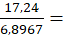 Wzór C6,8967H17,24 nie jest wzorem prawidłowym i końcowym, dlatego należy obie ilości moli podzielić przez mniejszą z wartości- 6,8967, wówczas: