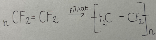 Reakcja polimeryzacji polega na łączeniu się ze sobą wielu cząsteczek związku nienasyconego w wyniku rozerwania wiązania p bądź jednego z wiązań p w wiązaniu wielokrotnym. Produktem takich reakcji jest wielocząsteczkowy związek chemiczny. Reakcja ta do zajścia wymaga podwyższonej temperatury, ciśnienia oraz obecności katalizatora.