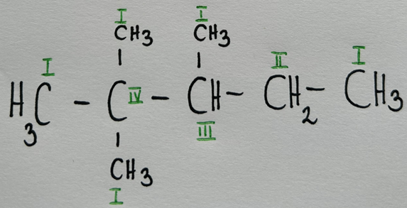 Rzędowość atomów węgla jest tożsama z ilością pozostałych atomów węgla, z którymi dany węgiel bezpośrednio się łączy.