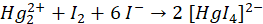Zacznij od uzgodnienia ilości rtęci – po lewej stronie są 2 atomy, więc potrzebne są 2 cząsteczki [HgI4]2-. W ten sposób po prawej stronie równania mamy łączny ładunek -4, a po lewej wciąż +1, dlatego w kolejnym kroku, należy zwiększyć ilość I- tak, aby wyrównać ładunki po obu stronach – potrzebne jest 6 jonów. Obie strony równania są uzgodnione pod względem ilości atomów i ładunków.