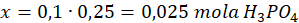 x moli – 0,25 dm3