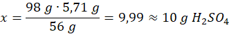 98 g kwasu – 56 g Fe