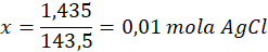 Z 1 mola HCl powstaje 1 mol AgCl, więc 0,01 mola powstało z 0,01 mola HCl.