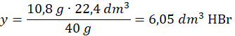 22,4 dm3 HBr – 40 g NaOH