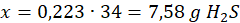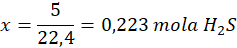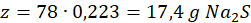 NaOH użyto w nadmiarze, liczymy ilość soli z ilości H2S.