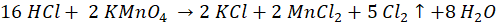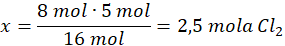 16 moli HCl – 5 moli Cl2