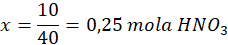 Ilość kwasu, która zareaguje z 10 g NaOH: