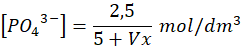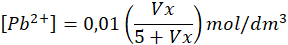 Z powodu bardzo małej wartości iloczynu rozpuszczalności i małej wartości stężeń przyjmij, że Vx jest na tyle małe, że nie zmienia objętości roztworu, i jego objętość wynosi 5 dm3.