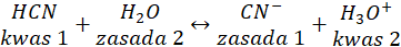 Zapisz reakcję HCN z wodą, wskaż pary kwas-zasada.