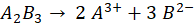 1 mol A2B3 – 2 mole A3+
