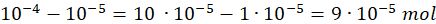 Ponieważ mamy 1 dm3 roztworu to podane stężenia są też ilościami moli jonów. Należy obliczyć różnicę: