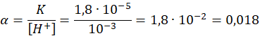 Ponieważ kwas jest jednohydronowy to ilość H+ odpowiada ilości zdysocjowanych cząsteczek.