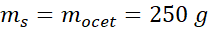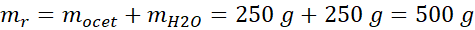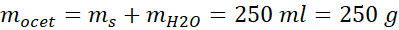 Masa roztworu to suma substancji i wody, które tworzą roztwór. Dla wody przyjmujemy, że 1 cm3/1 mlto 1 g, ponieważ gęstość wody w przybliżeniu to 1 g/cm3. Ocet to wodny roztwór kwasu octowego, więc ocet jako roztwór składa się z wody i kwasu. Na początku z danych obliczymy, ile samego kwasu znajduje się w roztworze octu, będzie to nasza ilość substancji rozpuszczanej.