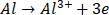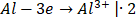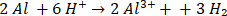 3. Zapisujemy oddzielnie schemat procesu utleniania, który w tym przykładzie dotyczy glinu (wzrost stopnia utlenienia z 0 na III) i schemat procesu redukcji, której ulega jon H+ (zmiana stopnia utlenienia z I na 0):