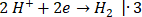 5. Każde równanie połówkowe musi być oddzielnie zbilansowane, nie tylko pod względem liczby atomów wszystkich pierwiastków, ale również z uwzględnieniem ładunku. Pierwiastek, który się utlenia, oddaje elektrony, a ten, który się redukuje, przyjmuje elektrony. Po dopisaniu odpowiednich liczb elektronów otrzymujemy równania: