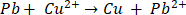 4. Ołów stoi w szeregu aktywności przed wodorem, a miedź za wodorem, więc ołów będzie wypierał miedź z roztworu i zajdzie reakcja opisana równaniem:
